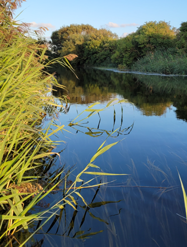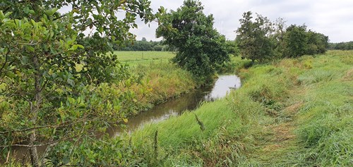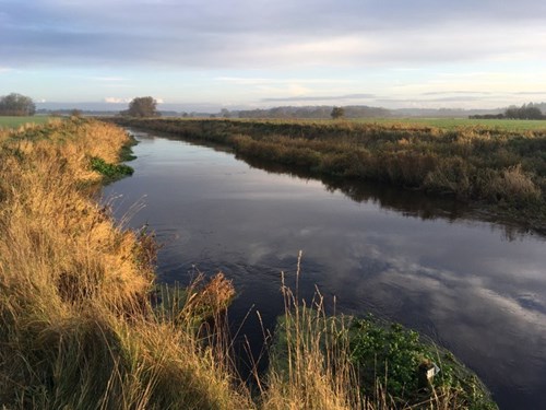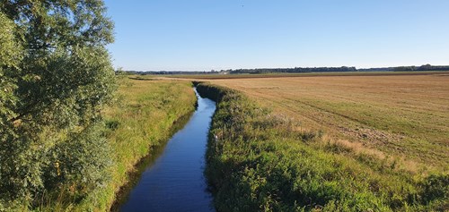 Der Fluss hat ein äußerst geringes Gefälle (0,3 ‰) und verläuft kanalisiert durch eine völlig flache, offene Landschaft mit Wiesen oder landwirtschaftlich genutzten Flächen. An den meisten Stellen liegt der Fluss tief eingegraben im Verhältnis zum Gelände. Die Strömung ist gleichmäßig-stagnierend, und es gibt nur wenig Variation im Flussbett, das aus Sand und Schlamm besteht.