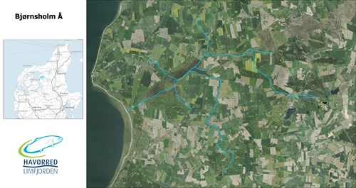 Bjørnsholm Å ist ein mittelgroßer Bach von 21 km Länge, der seinen Ursprung im Sjørup See hat. Der Bach fließt durch eine überwiegend offene und flache Wiesenlandschaft, bevor er weiter zum Vilsted See verläuft. Vom Vilsted See aus erstreckt sich der Bach 1,8 km, bevor er in die Bjørnsholm Bucht mündet. Trotz des kleinen Einzugsgebiets hat der Bach eine gute Wasserführung mit einem Durchschnitt von 1000 l/s, was auf reichlichen Grundwasserzufluss zurückzuführen ist.